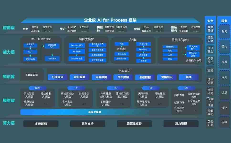 端到端的一站式AI工作空间深度融合了从企业战略规划到日常经营的全流程业务板块,,定向解决车企内部领域多、、、部门多、、、、链条长、、场景碎片化等难题,,,支持车企快速构建以AI为核心的生产力写作体系,,,,实现任务执行与AI能力的无缝集成与交互
